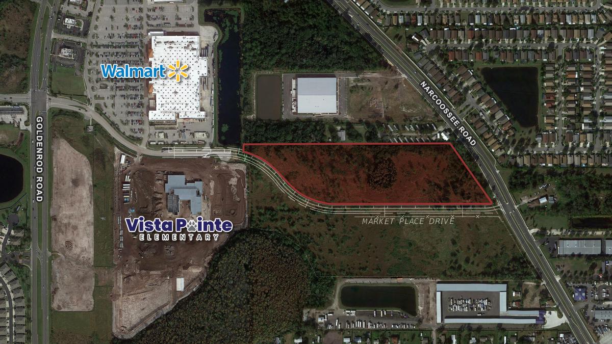 Located on Narcoossee Road north of Lee Vista Blvd with a traffic count of 22,500 CPD. Nearly adjacent to Walmart and Vista Pointe Elementary School. Nearby access to the 528 Beachline provides quick transport to/from the Orlando International Airport. Lake Nona & Medical City only 8 miles away.