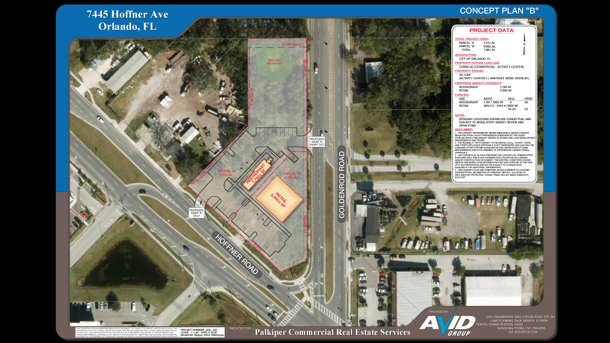 Located at the lighted intersection of Old Goldenrod Rd and Hoffner Ave with a combined average annual daily traffic (AADT) count of over 32,000 vehicles per day.