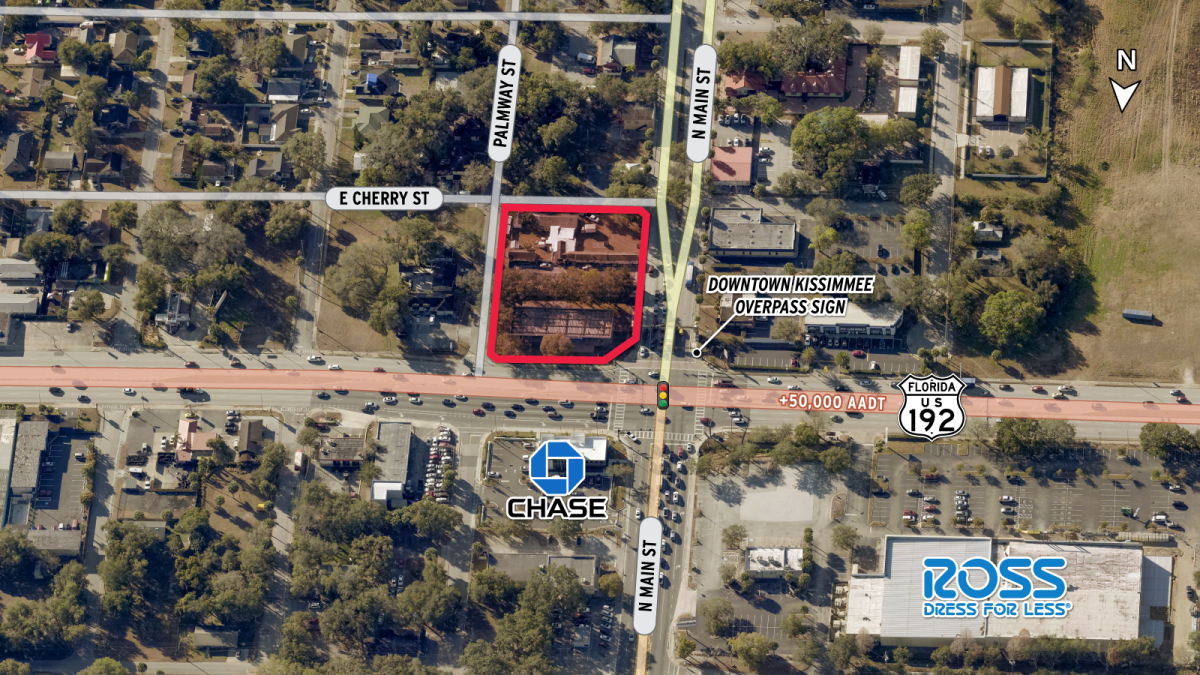 Located in Downtown Kissimmee, this property offers direct frontage on N Main Street and US-192 (+50,000 AADT). Adjacent to the Downtown Kissimmee Overpass Sign, the "Gateway to Kissimmee", at the lighted intersection of US-192 and N Main Street.