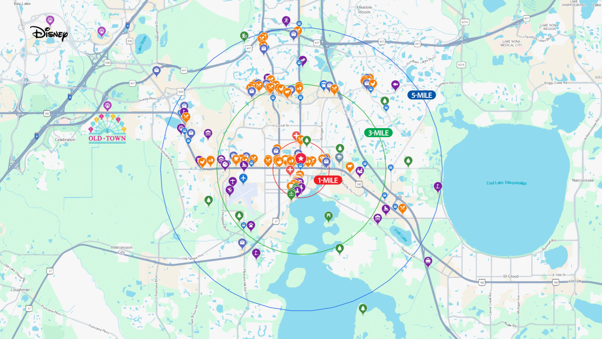 Zoned T5-M (Mixed-Use Center) with the city of Kissimmee